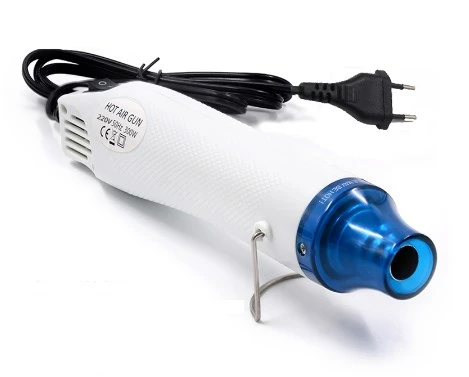 Dispone de un interruptor de tres posiciones: Apagado, Aire y Aire Caliente, cuenta con un soporte que permite dejar la pistola en posicion segura mientras se enfria despues de su uso.