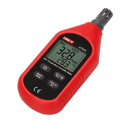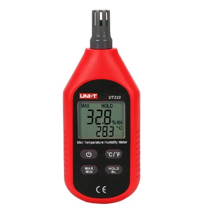 El UT333 es un termohigrometro digital que incorpora un sensor de alta resolucion para tomar muestras de humedad y temperatura, procesar datos y mostrar resultados en una pantalla LCD con enorme precisión.