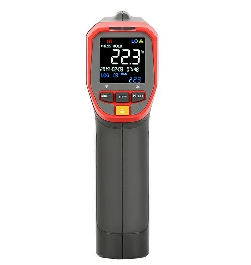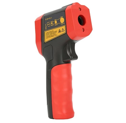 Este robusto medidor de temperatura sin contacto con alta resistencia a caidas cuenta con algunas funciones interesantes, no es necesario mantener pulsado el gatillo para realizar registro continuo de temperatura, tiene aviso sonoro de temperatura maxima y minima, datahold (resgistro de lecturas),…etc.
